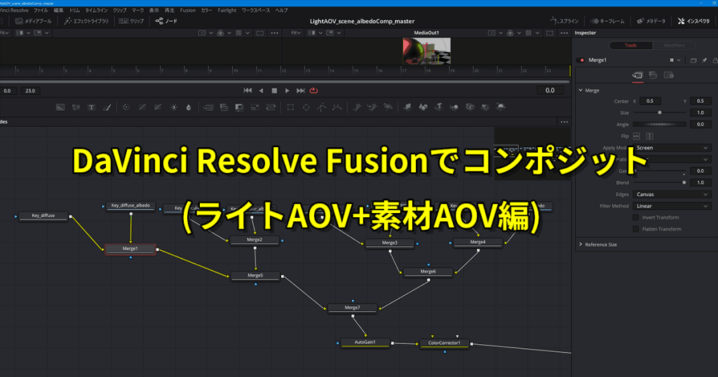DaVinci Resolve Fusionでコンポジット(ライトAOV編)