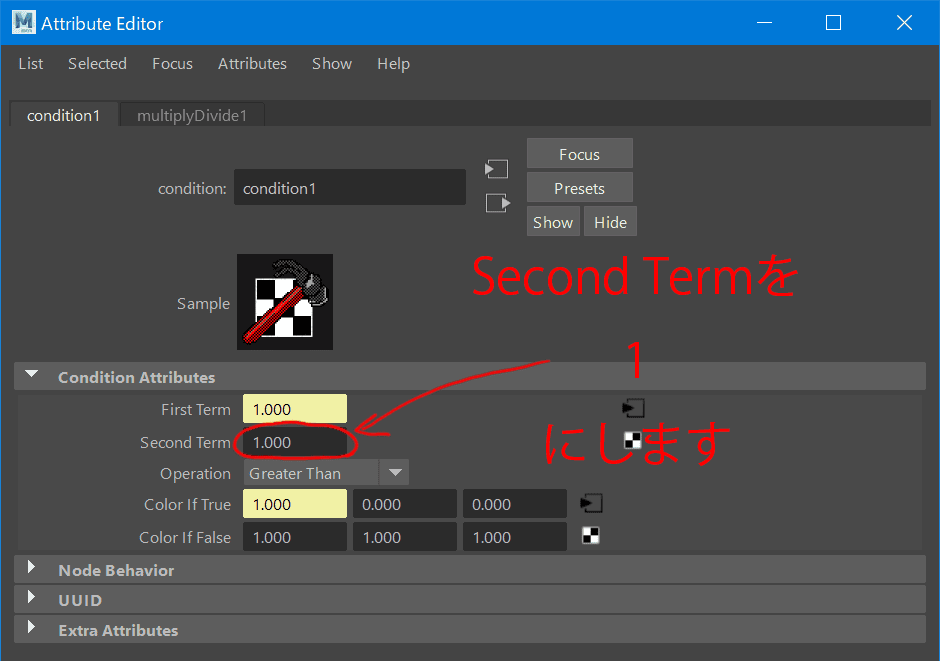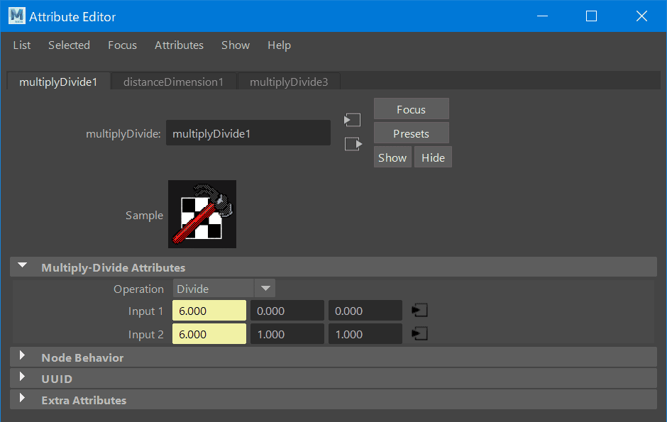 まず、multiplyDivideノードとconditionノードの両方にデフォルトのIKの長さとして数値(ここでは6)を直接入力していました。プログラミングの入門書にも書かれているように数値を直接いれてしまうとあとでそれに変更を加えたくなったときにすべての値を書き換えなければなりません。変数などの可変なものを用意するべきです。