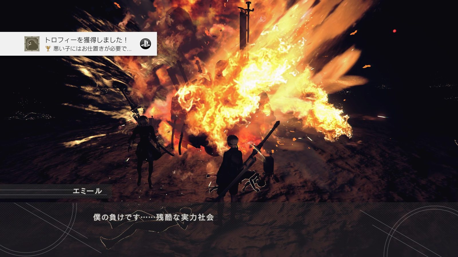 エミールというキャラがいるのですが、そのキャラとのサイドストーリーを進めることで獲得できるトロフィー群が結構大変です。「悪い子にはお仕置きが必要ですね」というトロフィーはそのエミールとのエピソードをコンプリートしないといけません。様々な条件を満たしながらすすめていかなければならないので攻略サイトを見ながら進めることになりますが、とりあえず1周目は何も見ないで普通に遊ぶことをおすすめします。トロフィーのためにゲームをやるのではなく面白いゲームだからトロフィーを狙ってみようという流れが自然です。